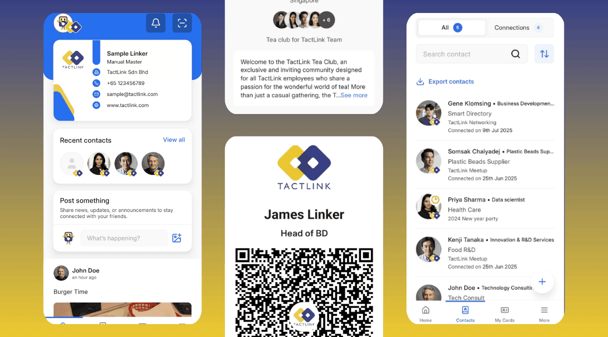 Lizard Global built Tactlink—a community-driven networking app that combines contact management, social interaction, and event-based discovery. Designed around real-world encounters, the platform removes open search to prevent random spamming and instead enables connections through associations and events. With a freemium model and strong privacy controls, Tactlink creates a trusted digital extension of offline networking.