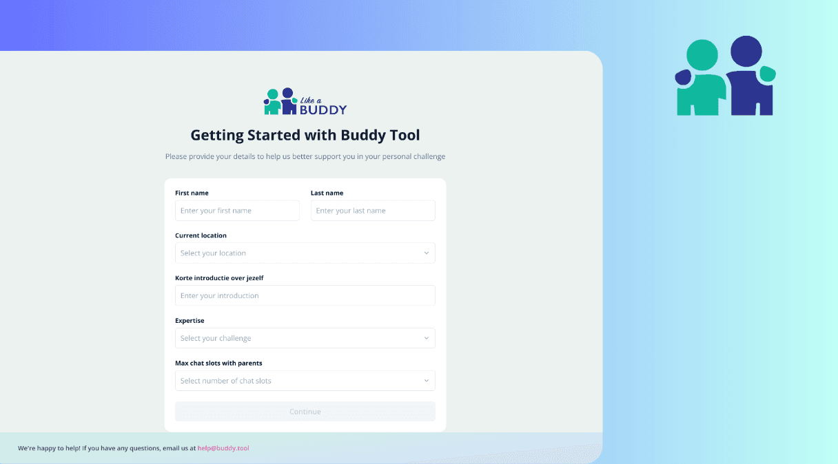 Like A Buddy, based in Rotterdam, Netherlands, is committed to youth care by guiding parents in managing and resolving complex child behavior. They focus on offering support and advice to parents dealing with challenging situations involving their children. Recognizing that parents often struggle in isolation, Like A Buddy envisioned a way to connect them with experienced "buddies"—trained advisors who could offer tailored guidance and emotional support.